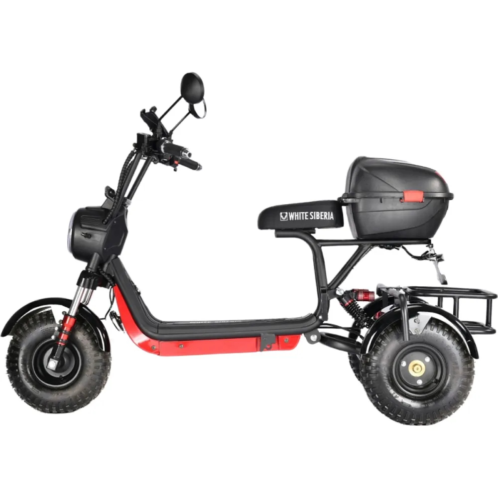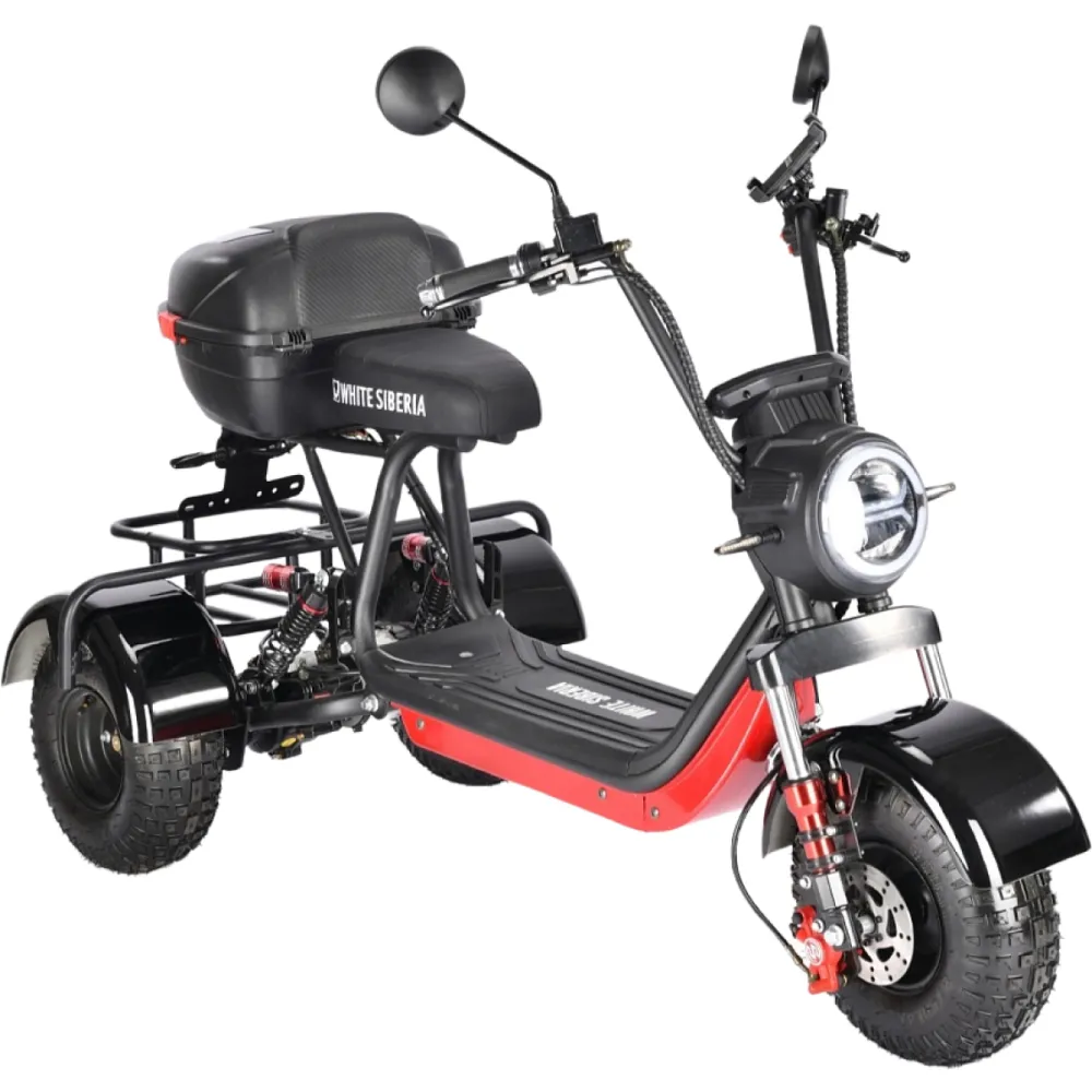 Электроскутер CityCoco WHITE SIBERIA TRIKE MINI 1500W 48V 18Ahмощный трицикл от российского бренда White Siberia. Визуально модель доказывает, подчеркивает силу и назначение. Электроскутер создан для целеустремленных смелых мужчин и женщин, ведущих активный образ жизни, для которых скоростная езда и прогулки на свежем воздухе занимают лидирующие позиции.