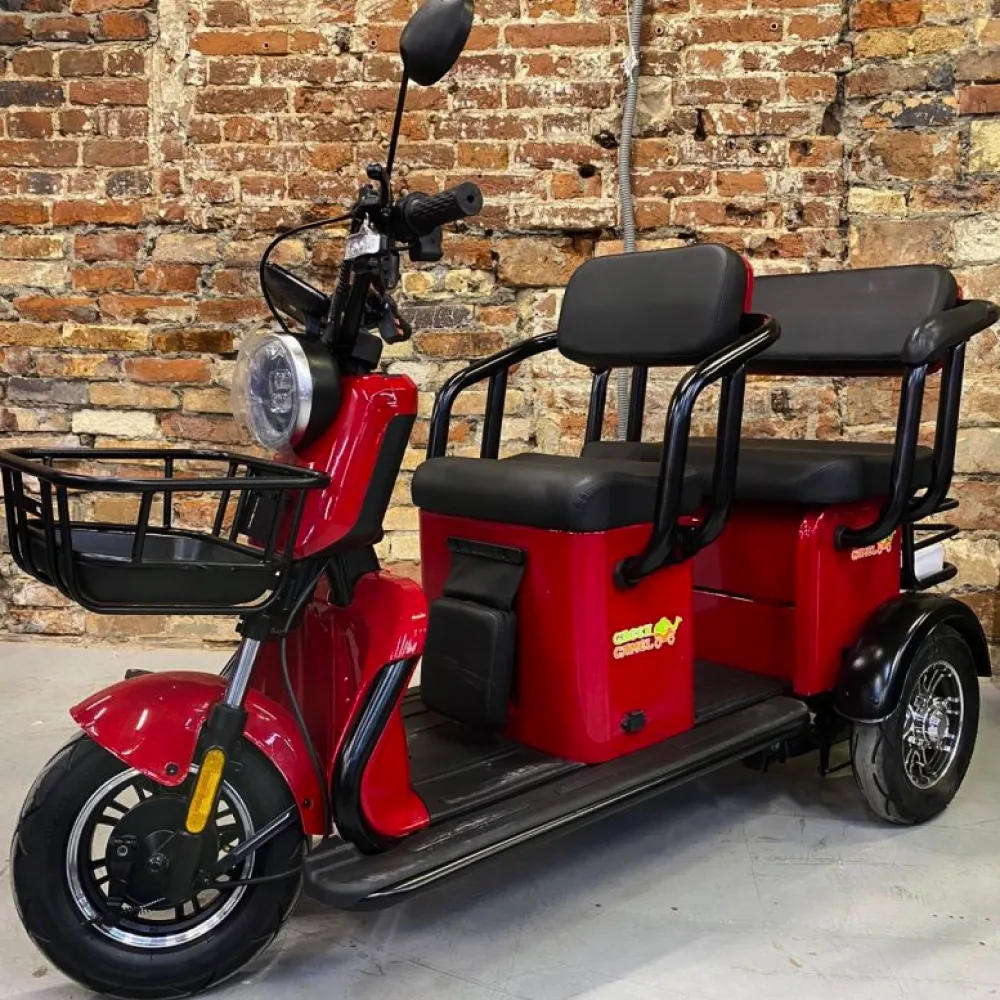 Электротрицикл GreenCamel Пони Z8 (60V 650W) дифференциал в красном цвете – яркая необычная модель моментально привлекает взгляды других участников движения. Техника предназначена для езды в черте города. Основная часть покупателей пользуется трициклом в туристическом бизнесе, курортной зоне. Купить технику по разумной стоимости, стать единственным владельцем трицикла в городе предлагает наш интернет-магазин.