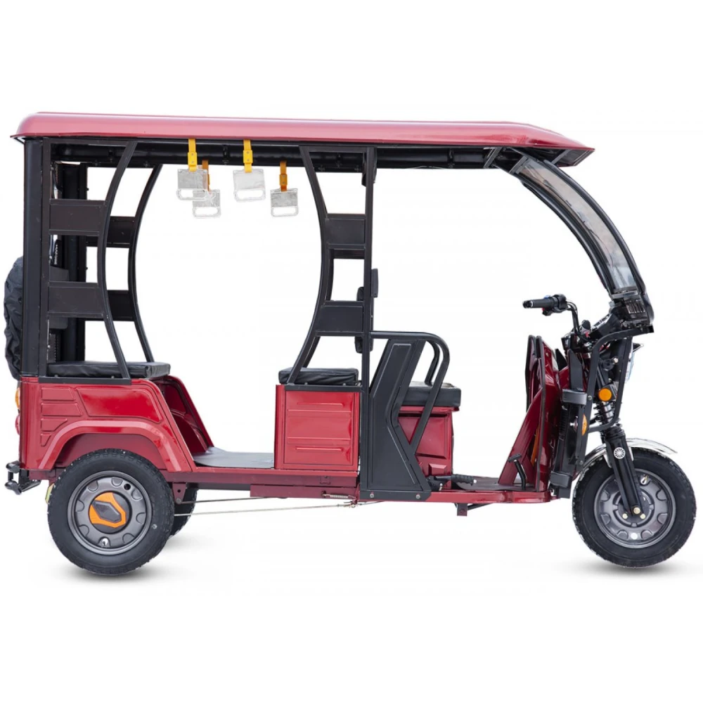 Техника с мощностью электродвижка в 1000 Вт и емкостью батареи 120 А*ч рассчитана на грузоподъемность до 600 кг, способна разогнаться до комфортной безопасной скорости 25 км/час и преодолеть на одной подзарядке дистанцию до 80 км. Для управления электрорикшей достаточно наличие любого водительского удостоверения. Само правление простое, не требует особого обучения. Со слов пользователей техника экономичная, затраты за 100 км пути составляют 7 руб. Модель оснащена барабанными тормозами, надежными и качественными, гарантирующими стопроцентное торможение.
