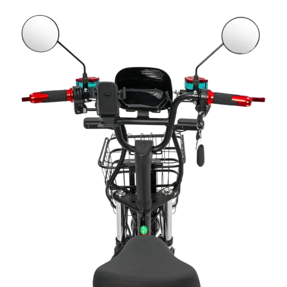 Тормозная система – дисковый гидравлический, что обеспечивает высокую эффективность торможения даже на высокой скорости и при намокших дорогах. Гидравлические дисковые тормоза отличаются стабильным усилием на ручке, меньшим износом колодок и лучшей защитой от попадания воды и грязи по сравнению с механическими аналогами. Управление электровелосипедом осуществляется с помощью ручки газа, что удобно для пользователей, привыкших к мопедам или электросамокатам. Велосипед позиционируется как городской, поэтому оптимально подходит для езды по асфальту и ровным покрытиям; он не предназначен для серьёзного бездорожья, но справляется с мелкой грунтовкой и неровными дорогами средней сложности.