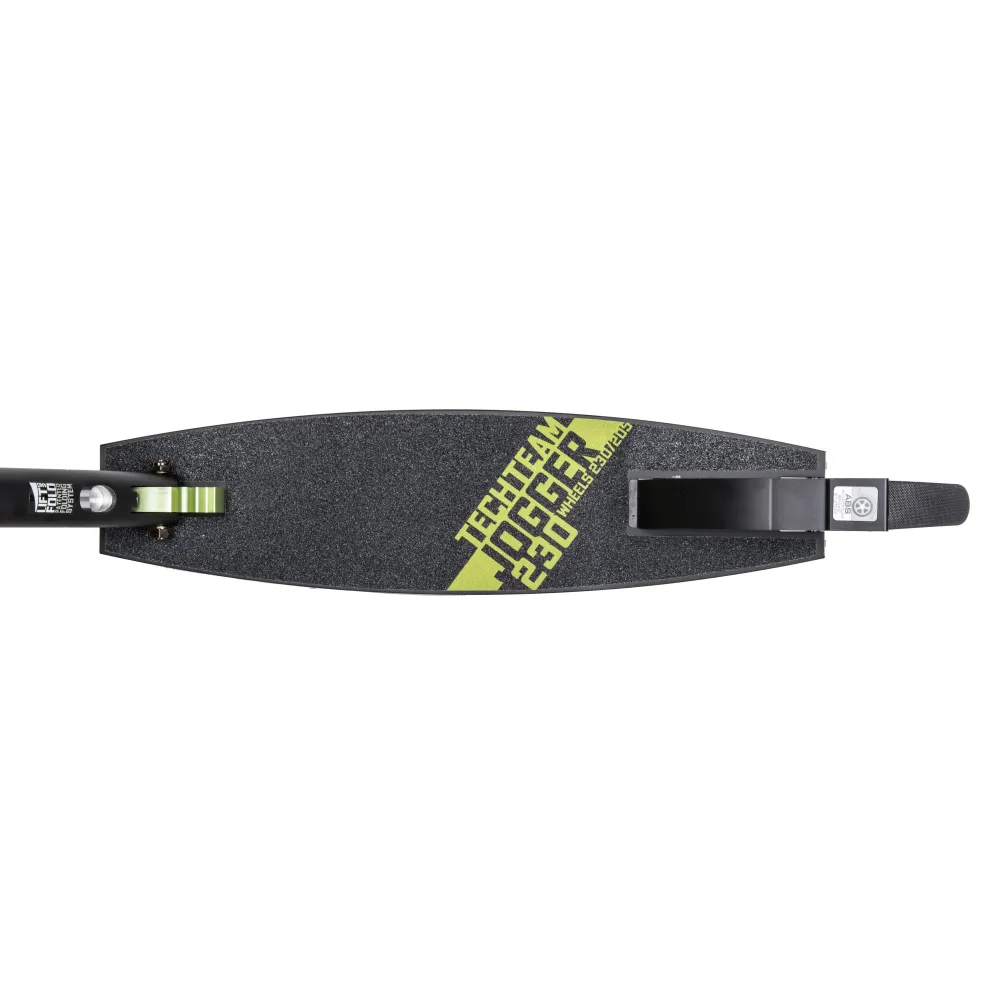 Самокат Tech Team JOGGER 230 серо-зеленый – лидер продаж сезона 2022. Техника востребована родителями и подростками от 9-летнего возраста массой тела до 50 кг. Самокат – компактный и эргономичный, весит 5,3 кг. С помощью уникальной системы складывания может быть трансформирован до минималистичных размеров.