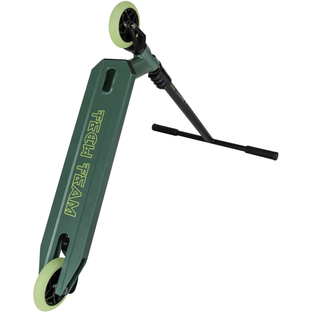 Производитель гарантирует надежность сборки, используя только фирменные детали. Повышенная комфортность техники обеспечивается благодаря удобной рулевой части. Резиновые накладки на руль самоката надежно закреплены. Имеют анатомически правильную форму, не скользят под руками. Трюковой самокат весом 3,75 кг позволит ощутить легкость передвижения и исполнения трюков. Приемлемая цена делает модель доступной для начинающих райдеров. Абсолютная безопасность самоката обеспечивается благодаря качественным задним ножным тормозам. Колеса диаметром 110 мм из прочного полиуретана позволяют прочно сцепляться с любой дорожной поверхностью.